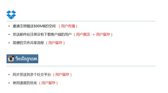 Dropbox,growth hacking 的发明者就是当时的 Dropbox,Dropbox 是我认为做 growth hacking 当中做得特别好的一家,大家看现在很多的网盘学它的邀请注册送空间。刚刚我提到了优化的一个方法是增加途径,或者优化体验,这一种就是属于诱导。给用户更 多的诱导性去提高这一个转化率。