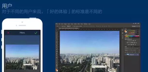 PS:对PS来说就不一样,PS面向的用户是专业设计师,这个时候,便捷高效的展示表达自己的设计创意才是用户体验好。复杂的图像处理软件,对于专业的设计师来说,虽然需要经过学习才能掌握,但一旦领会其操作技巧后就能非常高效的工作——所以对于设计师来说,这才是用户体验好。