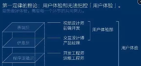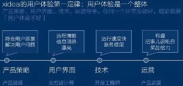 这句话的意思是,用户使用产品过程中的任何一个环节,如果做得不好,其结论都是「用户体验不好」。用户体验绝对不仅仅是界面或者表现层的事情。