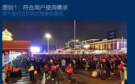 在这个原则里中讨论一个案例——12306这个服务的用户体验好吗?(如果你觉得好,那么还好意思说自己是做互联网的吗?)