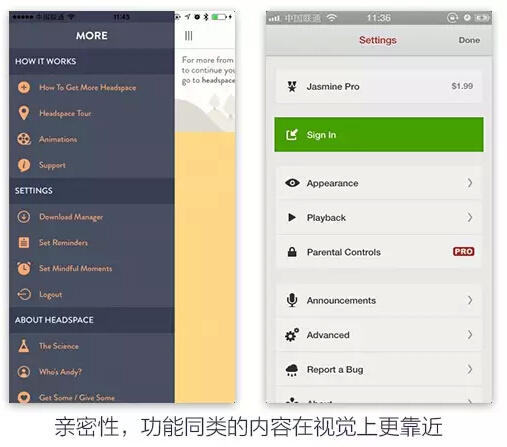 最后这段不是版式设计原理,更像是一种设计的心境。古人在写诗的时候有一种手法叫白描,原拓哉也曾强调“最美的设计是虚无”,在界面设计中同样追求一种“让 用户感受不到设计”的境界。每一条线/每一行文字/每一个按钮的存在都是都有它存在的理由。它不加无意义的修饰、不须陪村和烘托,让用户更关注内容的主体,弱化对视觉的认知。甚至于用户在滑动时看到一个按钮或一行文字也感觉这是理所当然的存在。“菩提本无树,明镜亦非台”,做设计和做人一样,一切有为法皆如梦幻泡影,不要注重形式才能明心见性。