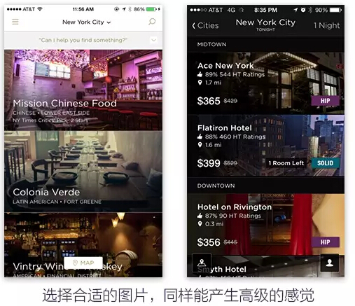 实际中也跟选取图片的元素/色调/表达出来的情感有关系,合适的图片也能散发出整个应用的气质,直接传达给人“高级”,“平民化”,“友好”等不同的感觉。