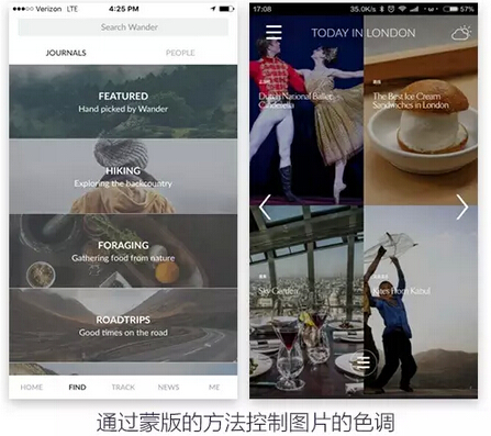 图片也是有不同的色调的,通过蒙版的方法可以控制这种色调。如果选择比较明亮的色调可以减轻这种对用户的压迫感,选择比较暗的色调可以让整个画面更沉稳,内容显示更为清晰。