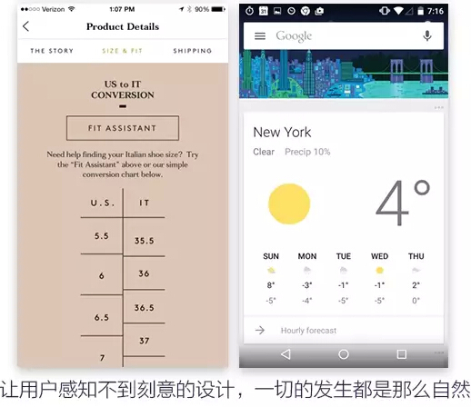图中的例子在某些地方处理得也不是那么自然,但是我认为以上的例子是有向“让用户感知不到设计”的方向上走的,没有完美的设计,只有努力变的更好的设计。最后,做好设计非一朝一夕,理解设计也非一朝一夕,希望各位善于发现美,也善于理解美。