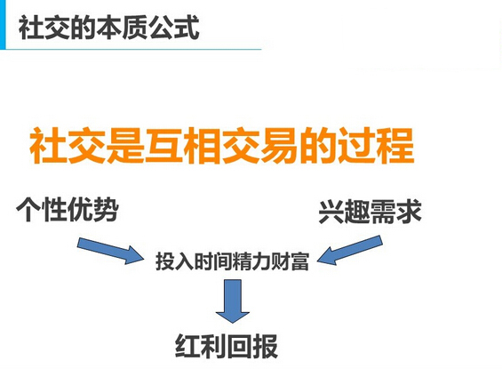 可能大家会觉得这个公式把社交看得太功利了,其实大家不要把“交易”这个词看得那么功利,这是件再正常不过的事情。