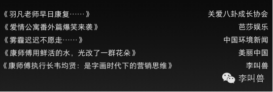 看一下经常被李叫兽黑的康师傅公众号的近期文章,你会感觉这不像一个产品: