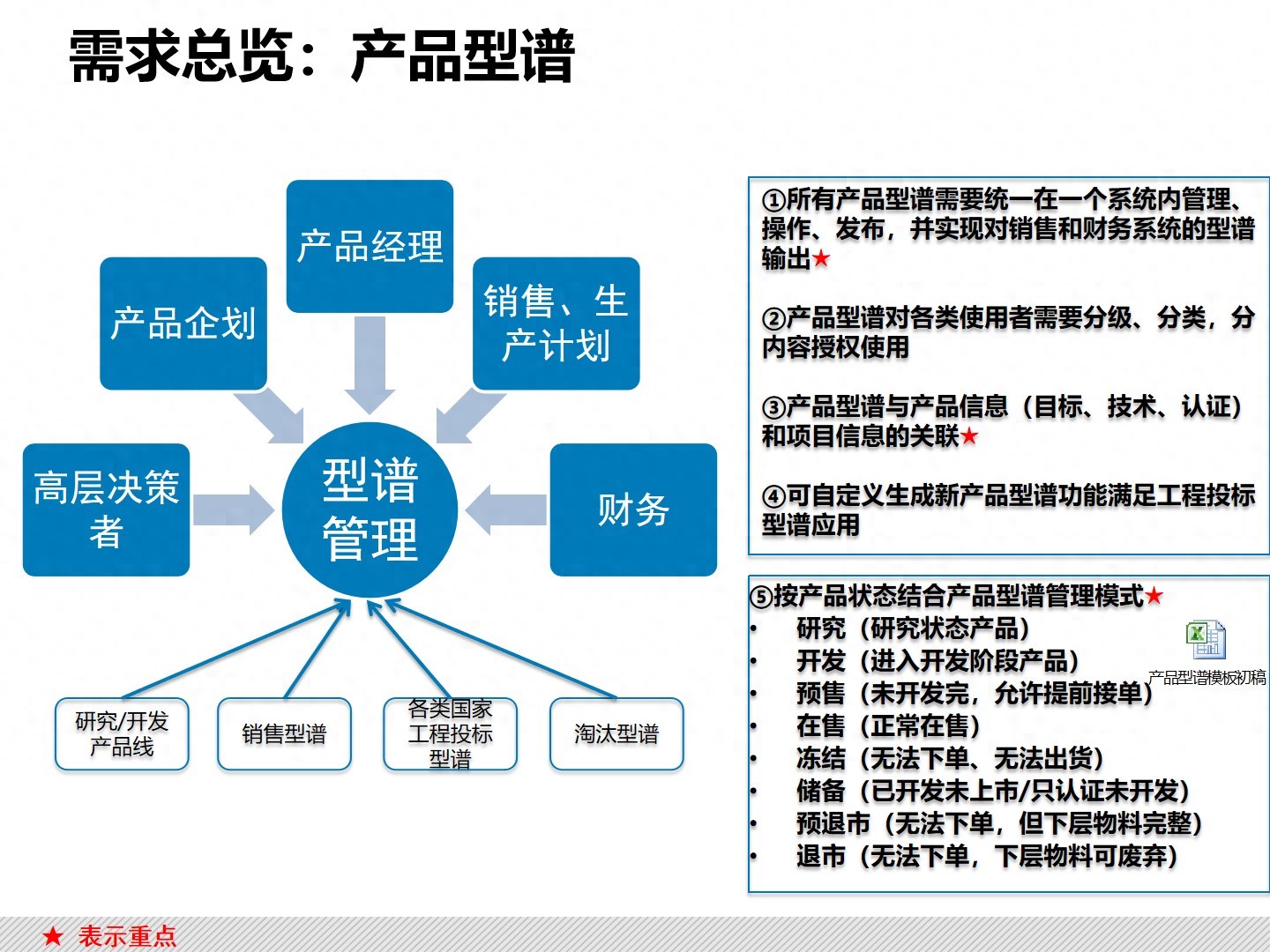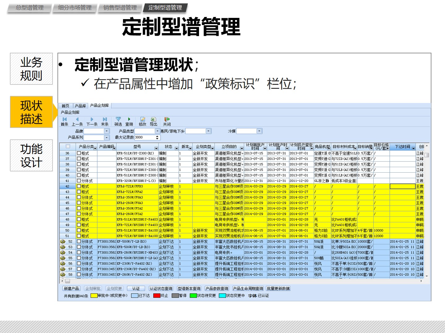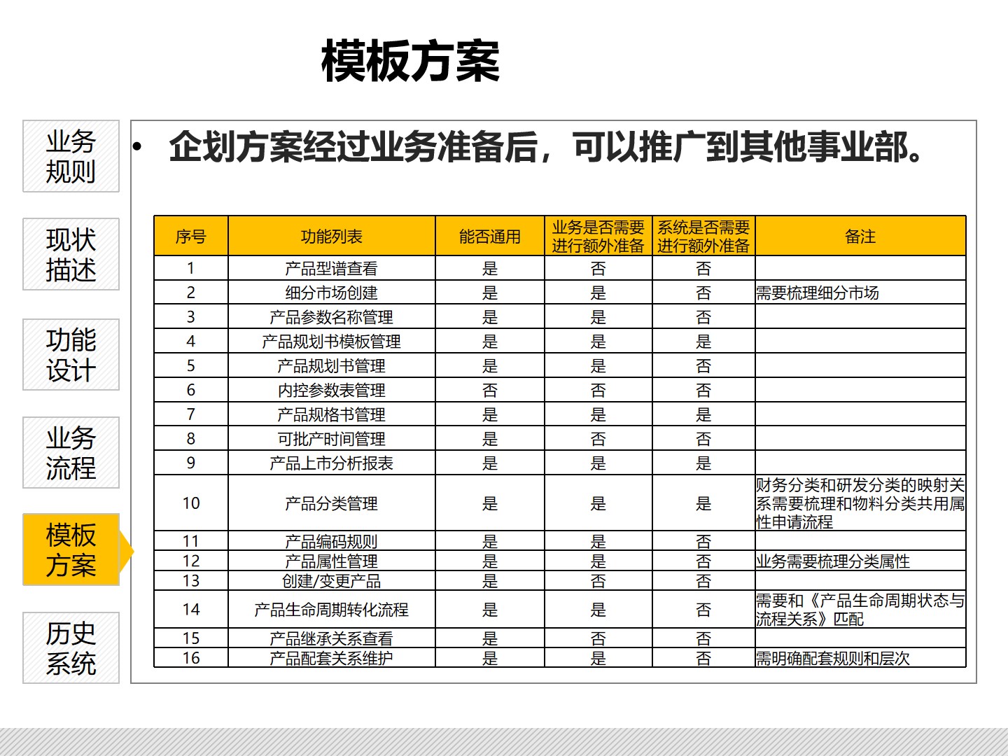 - 状态区分 :对产品进行更细化的状态区分,如开发中、上市、预退市等,以便更好地指导系统运转。