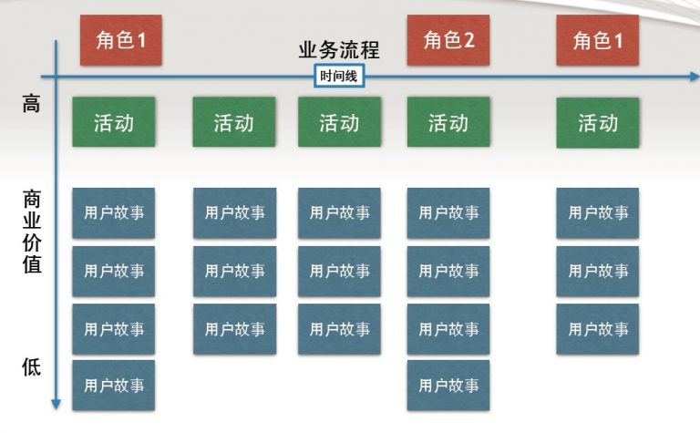 从上往下,按照重要性或者优先级排序。最后得到一个排好了顺序的完成的产品用户故事地图。