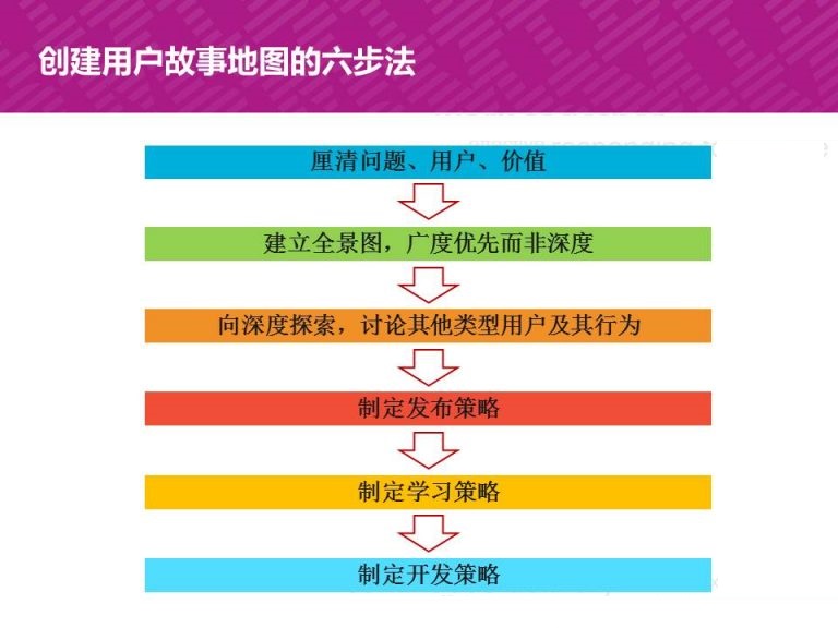 用户故事地图为我们提供了一种实现“用户体验是一个完整的过程”的产品管理方法,一个打通“产品规划”与“开发计划”的工具。它让我们可以: