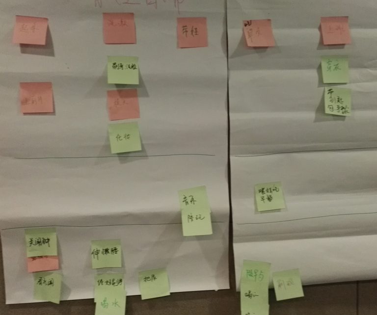 在之前的工作坊中,有的团队选择自己团队中的一员作为参考者,而有的团队则给想象中的人建立了用户画像(Persona),然后针对自己团队建立起来的Persona,写出想象中的Persona的全部活动。这都是可取的建立完整活动的办法。