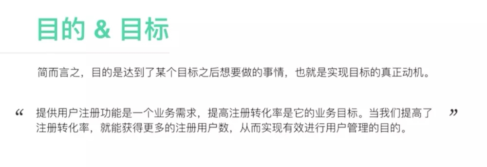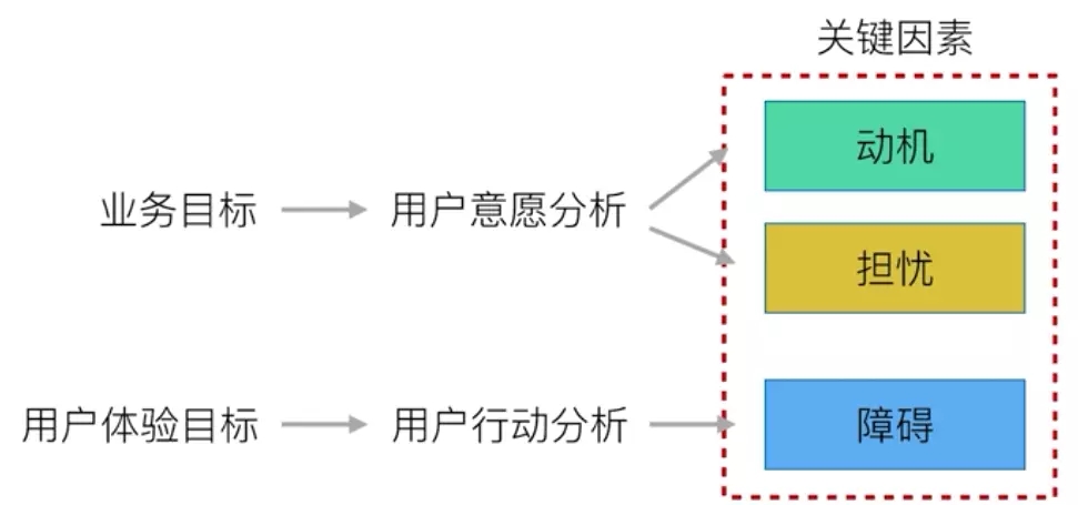 用户产生某种行为,通常是基于某种动机或原因,比如注册后,可以使用更多的功能;同时在注册前,用户可能也有一些担忧,比如说个人信息会不会泄露,用户会不会没事就收到垃圾短信;所以:用户的动机 担忧 以及使用中遇到的障碍都是影响用户体验目标和业务目标的关键因素。