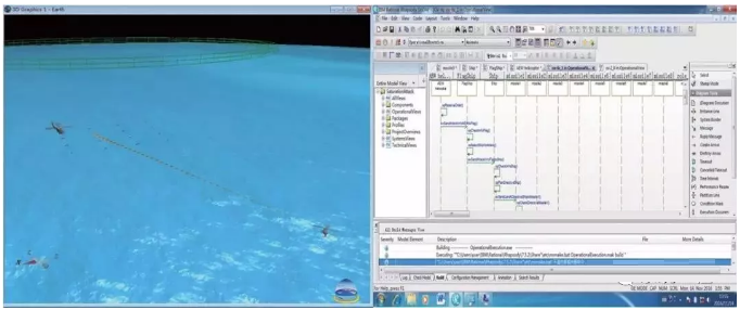 下面根据上文中提供的预警直升机海上作战信息和功能流图,建立运动仿真和逻辑推演软件的联合仿真模型,如图10