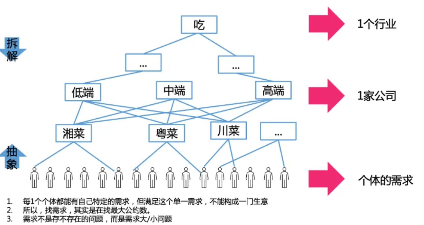 所以需要在“向下拆解“和“向上抽象”之间找平衡点,以“吃”这个需求为例: