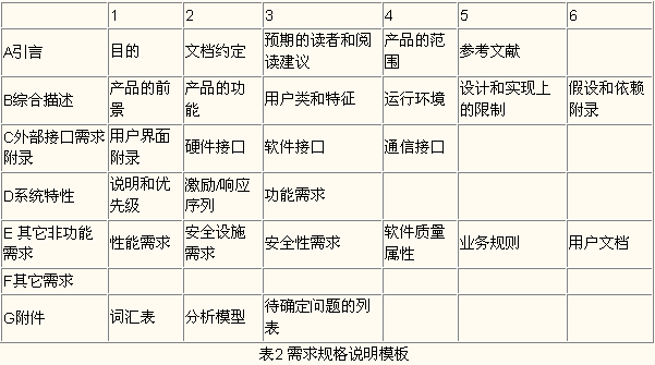 项目视图和范围文档包含了业务需求,而使用实例文档则包含了用户需求。你必须编写从使用实例派生出的功能需求文档,还要编写产品的非功能需求文档,包括质量属性和外部接口需求。软件需求规格说明阐述一个软件系统必须提供的功能和性能以及它所要考虑的限制条件,它不仅是系统测试和用户文档的基础,也是所有子系列项目规划、设计和编码的基础。它应该尽可能完整地描述系统预期的外部行为和用户可视化行为。除了设计和实现上的限制,软件需求规格说明不应该包括设计、构造、测试或工程管理的细节。 1)采用软件需求规格说明模版: 采用需求规格说明书模板在你的组织中要为编写软件需求文档定义一种标准模板。该模板为记录功能需求和各种其它与需求相关的重要信息提供了统一的结构。注意,其目的并非是创建一种全新的模板,而是采用一种已有的且可满足项目需要并适合项目特点的模板。许多组织一开始都采用IEEE标准830-1998(IEEE 1998)描述的需求规格说明书模板。要相信模板是很有用的,但有时要根据项目特点进行适当的改动。