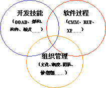 过程能力并不是保障成功的惟一因素,影响产品 /项目质量的关键因素还包括开发技能和组织管理(图5),这三者相辅相成、缺一不可。一味地强调提高过程成熟度而忽视组织建设、提高技能,对企业的短期成功和长期健康的全面发展都是不利的。