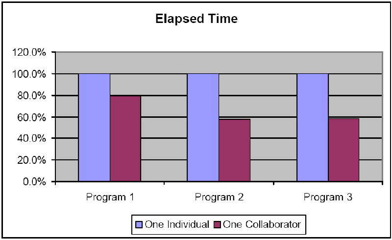 下面的表格(图-1)是完成相同的四个程序,独自工作和Pair工作使测试案例成功通过的百分比。
