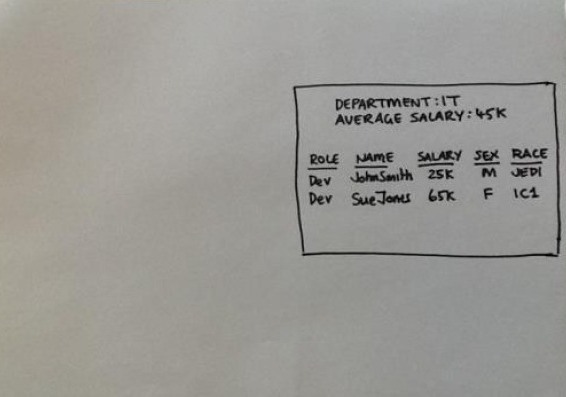 为了阐述本文中的信息坏味道,我们会使用一个虚拟的例子,这个例子来源于多个现实生活中的场景。我们的人力资源主管想了解各种开发人员的薪酬是如何支付的,这样他们就能避免在不同群体间进行不公正的支付所导致的法律纠纷。