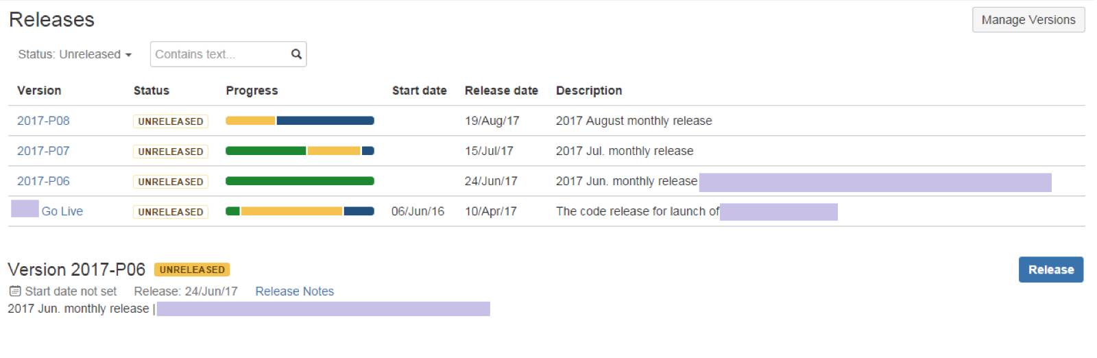 我们可以在JIRA中做发布计划。在管理界面中,管理员可以根据发布计划定义