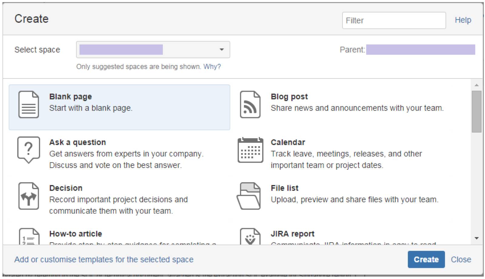 除了可以构建普通的文档页面外,还可以通过其预设或自定义的模板生成会议记录、日历管理、博客、JIRA