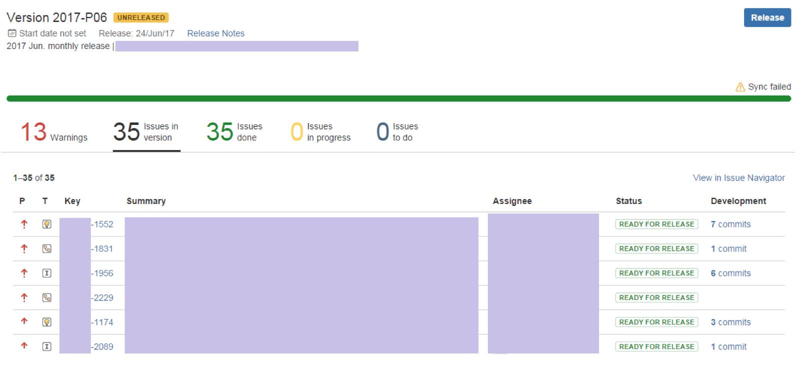 Version,包含发布日期与发布提要。在每一个 Issue 中,我们可以在 Fix Version/s