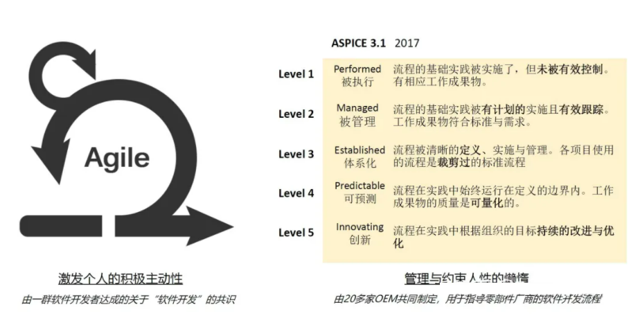 前面讲了很多“敏捷”的好处,但是在汽车行业“ASPICE”才是老大哥啊。本节就讲讲把这两者放一起讲讲。