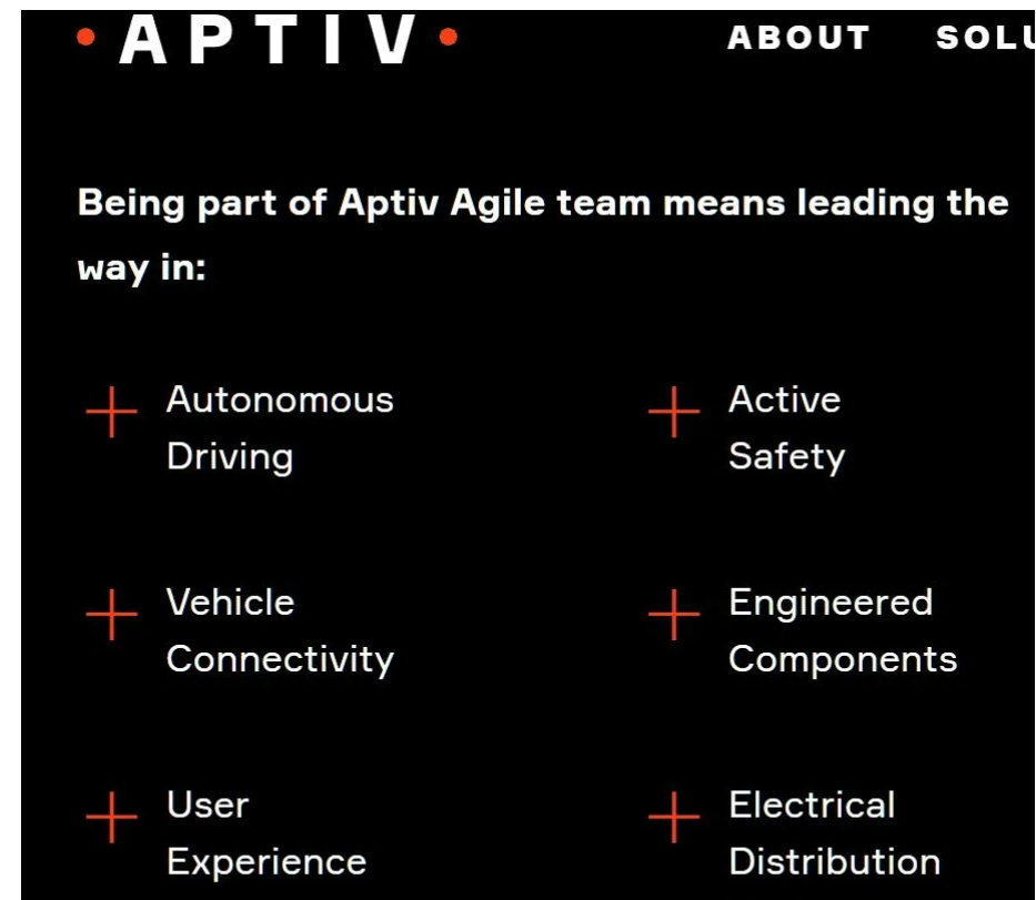 至少是2020年起,Aptiv已经在全球范围内全面推广”敏捷”,且聘请咨询公司专门定制了AutoScrum的敏捷框架,在公司官网也可以看到其已经在"主动安全"、"自动驾驶"、"车辆互联"等领域应用敏捷方法了。[4]