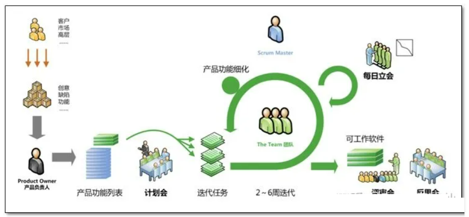 关键角色:Product Owner(产品负责人), Scrum Master(敏捷教练)