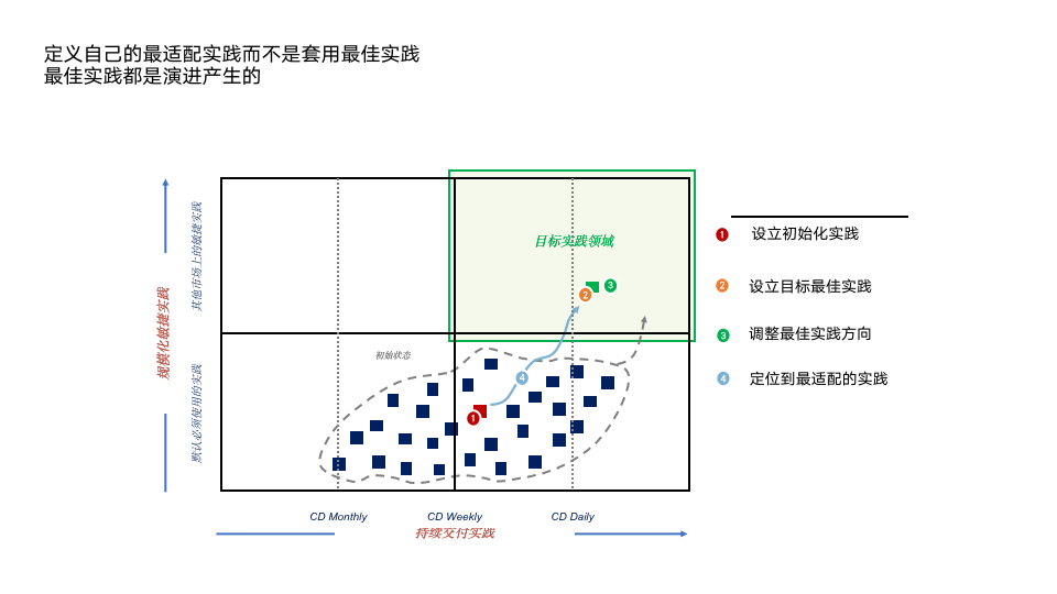 就像我们之前讨论过的最适配实践同样的道理,即便我们认为终点是正确的,最佳实践是美好的,但是组织在演进的整个过程是需要时间积累的。