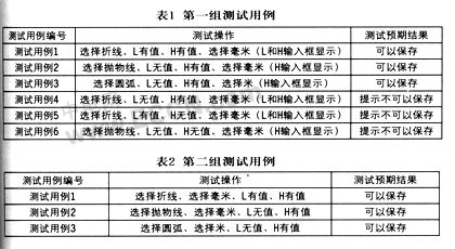根据测试用例设计框图一和测试用例设计框图二得到两组测试用例。第一组由3个测试用例组成,如表1所示;第二组由6个测试用例组成,如表2所示。