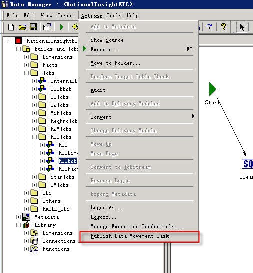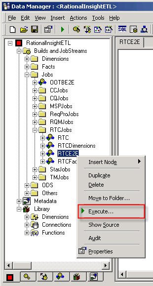 完成连接有效性的测试之后,即可以通过 Data Manager 抽取 RTC 快照数据用以生成数据仓库,用户只需执行右键点击或