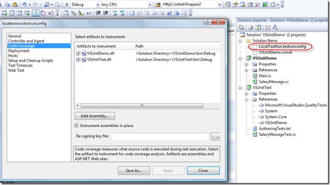 9. 我们现在担心,测试代码是否覆盖了。打开测试运行配置文件,如果你没有这个选择Solutin添加新项,添加测试运行配置文件