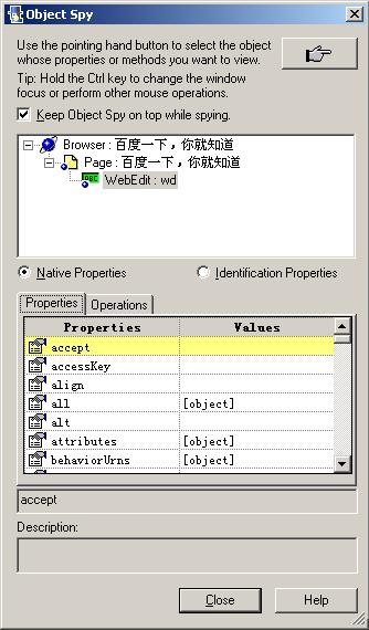 需求:成功使用QTP的SPY识别出百度搜索框(WebEdit)控件