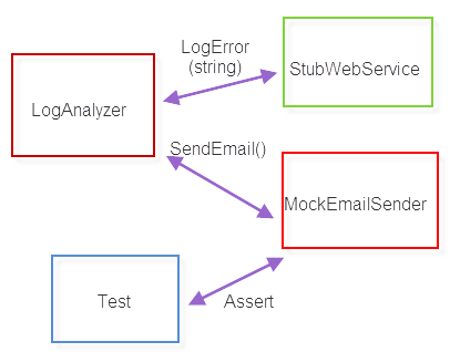我们把StubWebService和MockEmailService两个类的实例注入到产品代码中。(因为多态特性嘛)。