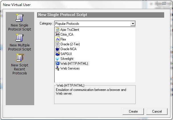 当我们试图创建一个新的VUser的时候,就会弹出协议选择对话框。