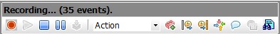 在录制时,用户可以选择哪些操作生成脚本在vuser_init、Action和vuser_end中,同时,也可以在录制时随时加入transaction的定义、注释和同步点。VU录制工具条如下所示: