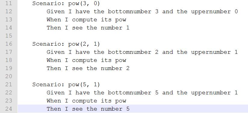 接下来先来一条最简单的测试用例 computePow.feature,如下图所示,这个测试用例在上面首先说明了这是一个计算