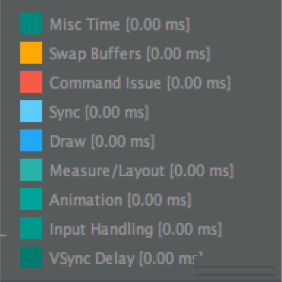 GPU Monitor中展示的柱状图的颜色数量也是与系统版本有关的,若使用5.x系统,GPU Monitor中渲染耗时展示如下: