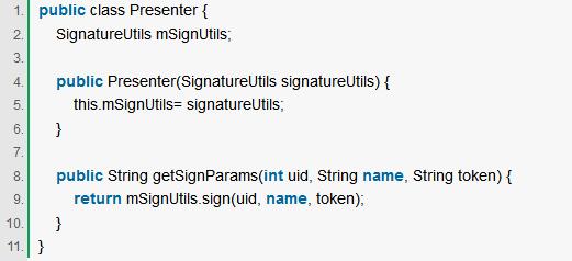 4).单元测试时,把mock SignatureUtils传给Presenter。