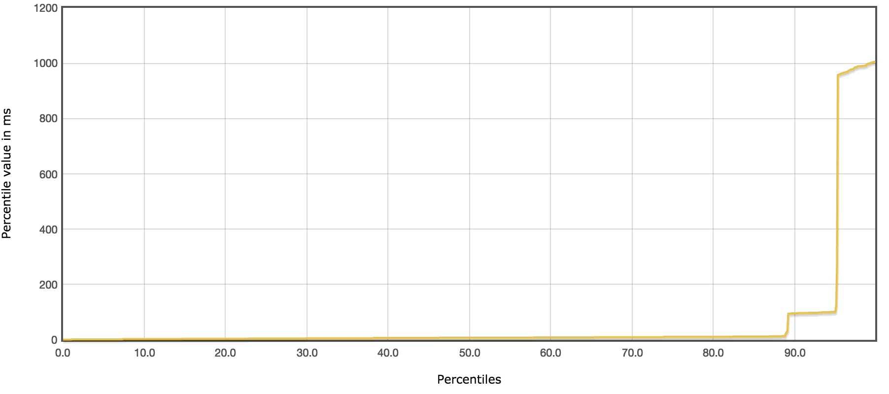 总共有1000次请求,平均响应时间是58.9ms,TP95是123.85ms(平均响应时间的2.1倍),TP99是997.99ms(平均响应时间的16.9倍)。假设应用设计的最大响应时间是100ms,单看平均时间是完全符合要求的,但实际上已经有超过50个请求失败了。如果看TP95或者TP99,问题就很清楚了。