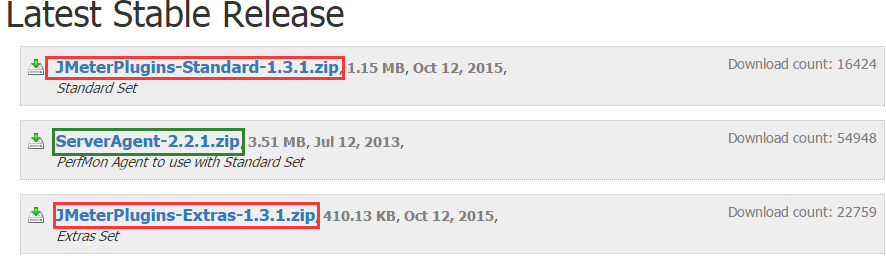1 ·ÃÎÊÍøÖ·http://jmeter-plugins.org/downloads/all/£¬ÏÂÔØÈý¸öÎļþ¡£ÆäÖÐJMeterPlugins-StandardºÍJMeterPlugins-ExtrasÊǿͻ§¶ËµÄ£¬ServerAgentÊÇ·þÎñ¶ËµÄ¡£