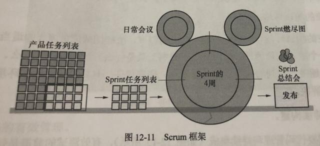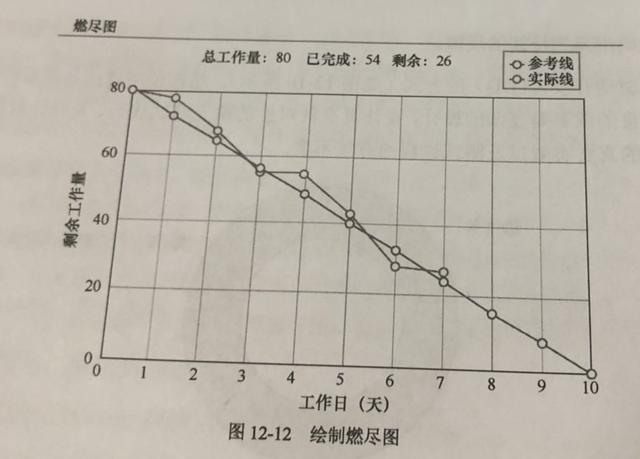 在敏捷团队中,对工作量的预估是项目开始前的必要工作,但是预估并不能起到真正的作用,相反,很多工作都是在预估的情况下比预期时间延长甚至是不能如期完成。因此可以使用迭代式增量软件开发过程(Scrum,如图12-11所示)框架中的评估方式来评估项目的复杂程度,绘制燃尽图(如图12-12所示),看到团队的真实工作效率和进度,避免陷入无休的争论当中。