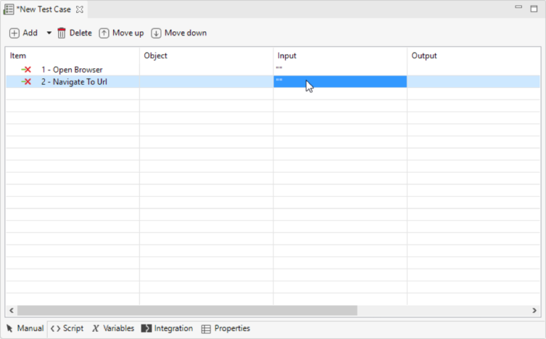 2.一旦创建了新的测试用例,它将在手动视图中打开。这个视图允许用户在需要很少编程技能的情况下轻松定义测试用例的步骤。