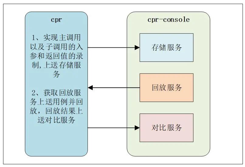 CPRReplay£º¹¦ÄÜΪ½ÓÊջطŷþÎñÌṩµÄ»Ø·ÅÁ÷Á¿£¬ÔÚ´ý²â´úÂë»·¾³ÖнøÐлطţ¬²¢½«»Ø·Å½á¹ûÉÏËÍÖÁ¶Ô±È·þÎñ£¬ÈÃÆäʵÏÖÕý³£ÏµÍ³ºÍ´ý²âϵͳ·µ»Ø½á¹û±È¶Ô²îÒìµÄÄÜÁ¦¡£