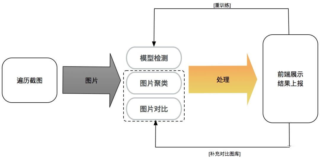 初始模型在训练时样本有限,但随着app不停更新迭代,图片检测样本数量的逐渐增多,会出现某些新页面被错误分类,要解决这类误报问题,亟需加入模型重训练。