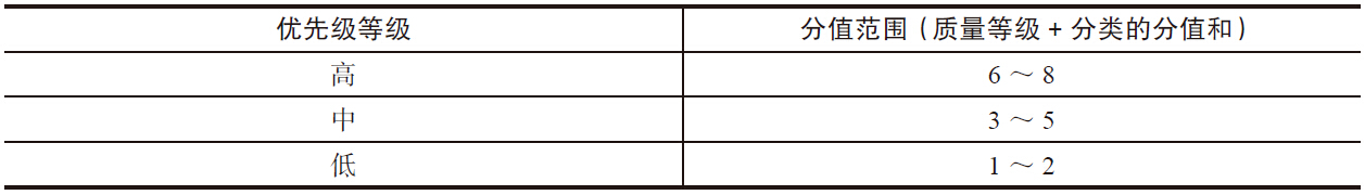 表3 特性—质量等级表