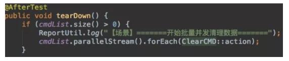 所有测试用例执行完成后,afterTest里遍历队列依次数据清理