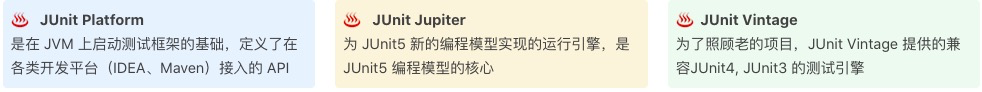 JUnit5 则诞生于一个互联网新技术大爆发的时期,它的目标是作为一个测试平台,来连接测试工具、测试引擎和用例。JUnit5 的主要组件可以分为。