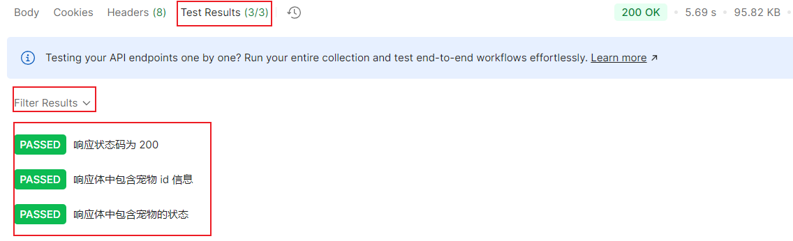 运行测试集后,可以点击结果查看详细信息,点击接口查看请求头,参数,body等信息