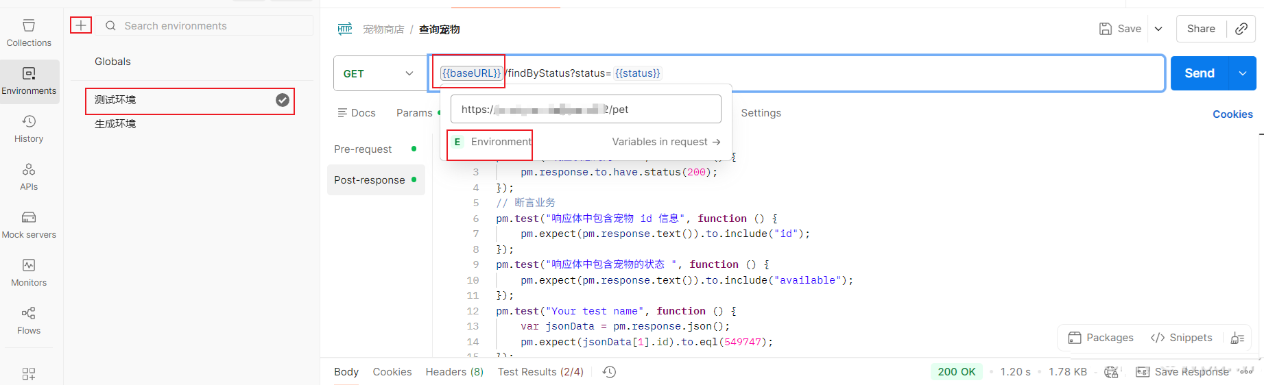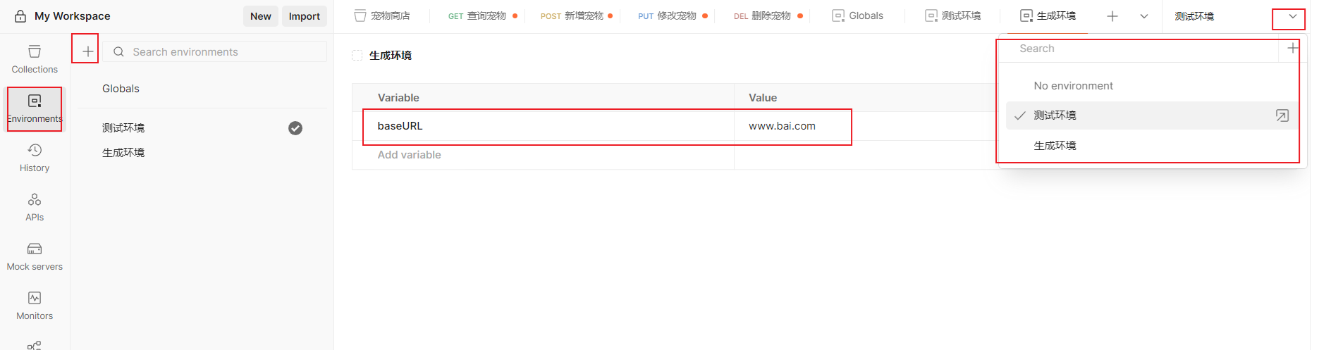 环境变量设置:可以通过公共变量,快速切换生产环境和测试环境,提高测试效率