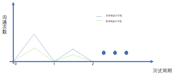 图 3 有无软件详细设计文档对测试周期和沟通次数的影响示意图